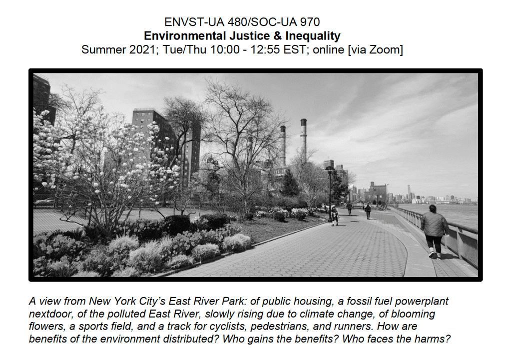 Environmental Justice & Inequality, NYU Environmental Studies Department • online • summer 2021